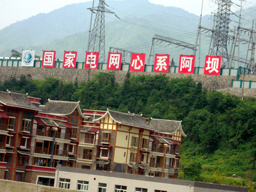 國家電網(wǎng)心系阿壩,對災(zāi)后重建投入了大量人力物力,圖為映秀110KV變電站。