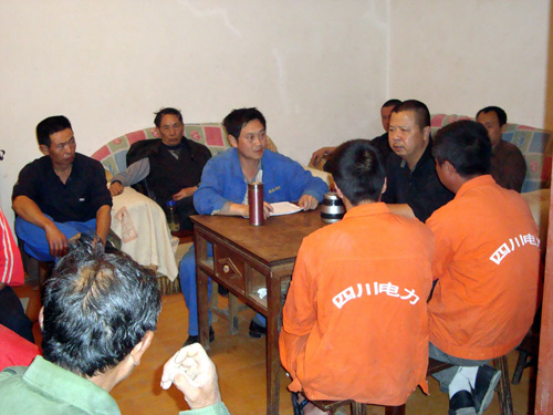 2011年6月6日四川省強(qiáng)波電力工程有限公司董事長孫波先生與公司主要負(fù)責(zé)人一行驅(qū)車前往汶川,理縣看望戰(zhàn)斗在施工現(xiàn)場的員工,2011年5月公司承建的理縣城網(wǎng)改造工程正緊鑼密布夜以繼日加班加點的緊張施工,此次工程項目主要是通過變電站出線(采用YJV22 3ⅹ300)高壓主電纜,開挖電纜溝,設(shè)置電纜井3KM,從老城區(qū)跨江到新城進(jìn)入環(huán)網(wǎng)保護(hù)柜然后從環(huán)網(wǎng)柜出線到電纜分支箱,進(jìn)入箱式變壓器,現(xiàn)對主城區(qū)主要街道,景點,新上400KVA箱變12臺,工程投資500多萬元,城市電網(wǎng)的改造意義重大,改造后將對理縣人民的生活用電,工業(yè)生產(chǎn)的用電質(zhì)量得到大大提高,長遠(yuǎn)于未來是一件民心工程,造福的工程,強(qiáng)波公司十分重視工程的建設(shè),抽調(diào)了公司的精兵強(qiáng)將,制定了各項措施,確保工程,保質(zhì),保量順利竣工,孫總仔細(xì)檢查了工地的施工情況和存在的安全隱患,特別是跨江放線的施工組織措施,當(dāng)天進(jìn)行了預(yù)演,對存在的問題提出了整改通知,晚上孫總與工地員工一起吃粽子共度端午節(jié),工地員工大受鼓舞和感動。大家都決心一定要保質(zhì),保量提前完成任務(wù),不辜負(fù)公司的希望。 四川省強(qiáng)波電力工程公司 工地記者:劉雨報道 2011年6月10日