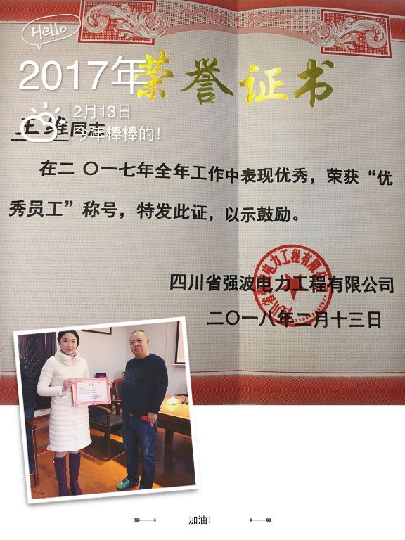 為弘揚(yáng)員工一年來的辛勤工作及為公司做出的貢獻(xiàn),同時(shí)為鼓勵(lì)更多的員工與時(shí)俱進(jìn)、奮力拼搏,在平凡的崗位上創(chuàng)造出不平凡的業(yè)績。強(qiáng)波公司每年在年終會(huì)議上都會(huì)表彰一批先進(jìn)工作者。2017年表彰大會(huì)上大家公平、公正、實(shí)事求是的選取了兩位優(yōu)秀員工。