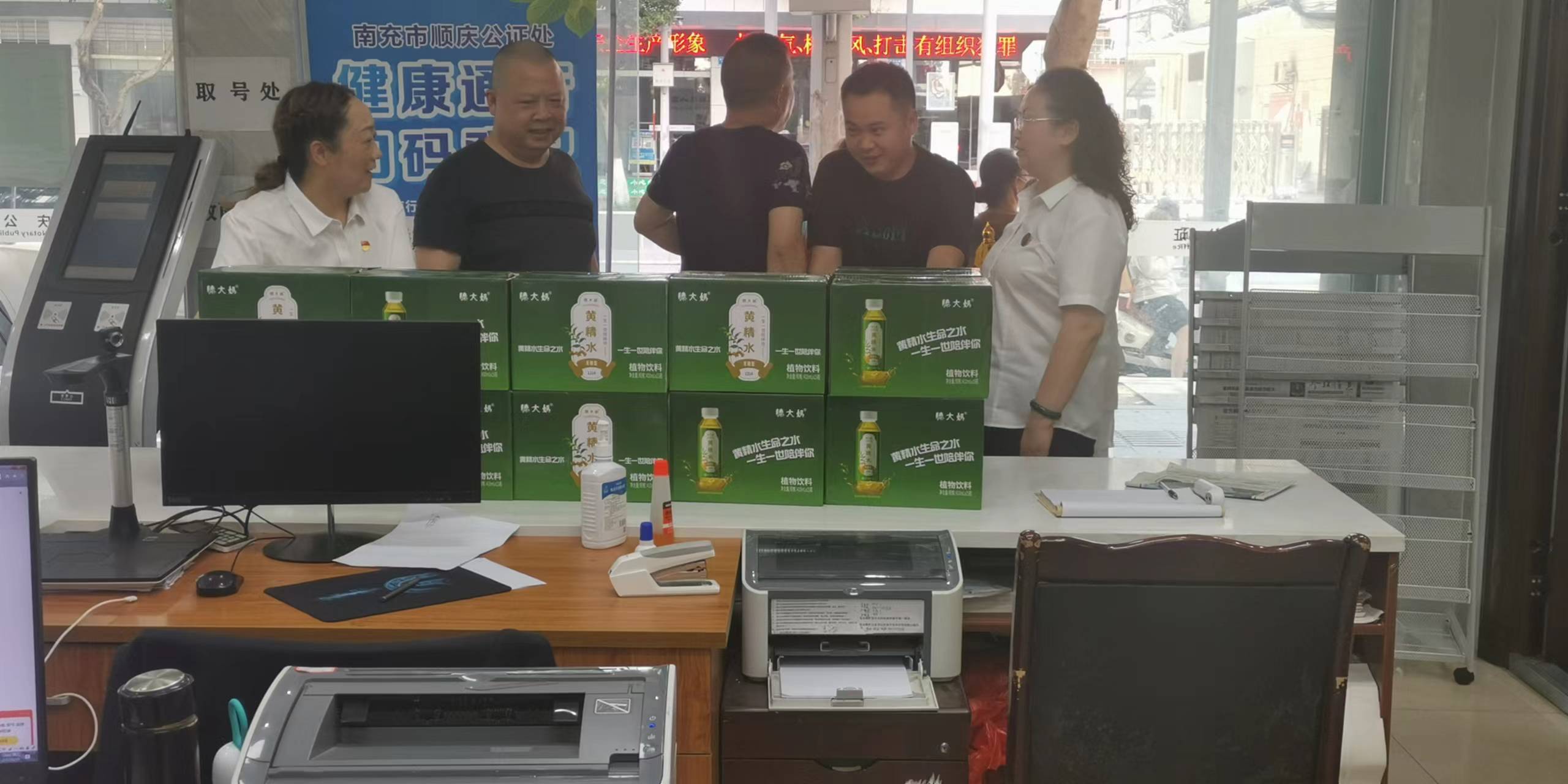 6月29日,四川省南充市順慶公證處收到了若干箱防暑飲品及一面印有“企業(yè)的貼心人,公平正義的人民衛(wèi)士”的錦旗,這是一家電力工程有限責(zé)任公司的負(fù)責(zé)人孫先生特意送到公證處,以感謝公證人員熱心服務(wù),公正辦案,同時(shí)在炎熱的夏日,真切的讓工作人員感受到了清涼。 南充順慶:公證為民暖人心贈(zèng)送錦旗表謝意