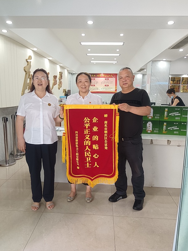 從孫先生的一席話中不難看出公證在法律實(shí)務(wù)運(yùn)用中有相當(dāng)重要的作用,它能預(yù)防糾紛,化解糾紛,為當(dāng)事人帶來(lái)財(cái)務(wù)與時(shí)間上的便利,也從側(cè)面反映了順慶公證處堅(jiān)持“崇法、尚信、守正、求真”的理念,不斷追求高水平辦案,高質(zhì)量出證,高熱情服務(wù),不斷加強(qiáng)公證的公信力,深受企業(yè)、群眾信賴(lài)。 南充順慶:公證為民暖人心贈(zèng)送錦旗表謝意 “服務(wù)無(wú)止境,細(xì)微顯真情”,小小的一面錦旗凝聚著該企業(yè)對(duì)順慶公證處服務(wù)工作的鼓勵(lì)和認(rèn)可,同時(shí)也在炎熱的夏日激發(fā)了全體工作人員的工作熱情。該企業(yè)的案例僅僅是順慶公證處經(jīng)辦的上萬(wàn)個(gè)公證案例中普通的一個(gè),卻是順慶公證處全心全意為人民服務(wù)的縮影,錦旗背后閃耀著順慶公證處的初心,只有初心不變方能得到始終。 (文/圖 王晨宇)
