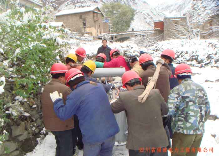 我公司在施工中認真貫徹上級的指示,嚴格做到安全、質(zhì)量、進度施工。在地處高原缺氧的條件下我施工隊人員臉上和嘴唇上都有不同程度的裂口。為了不拖延工程進度我公司施工人員依然堅守自己的崗位,每天午飯就是三個冷饅頭和一瓶礦泉水,看到這樣的場面,當(dāng)?shù)氐木用窠o我們端來了熱氣騰騰的酥油茶,頓時讓我們感覺到了藏族人民的溫暖。十一月中旬漫天飛舞的大雪給我們施工帶來了極大的困難。積雪深達25厘米,天氣轉(zhuǎn)冷至零下幾度。在這樣的情況下我公司的施工人員仍沒有退縮。迎著風(fēng)雪而上,貫徹著公司領(lǐng)導(dǎo)的指示,發(fā)揚強波精神。在雪停下的空隙加班加點的完成施工任務(wù)。就此經(jīng)過半個多月的奮戰(zhàn),于2009年11月19日圓滿的完成了黑水縣農(nóng)網(wǎng)改造工程,為無電區(qū)的藏族人民帶去了光明。